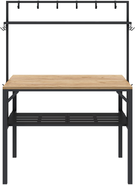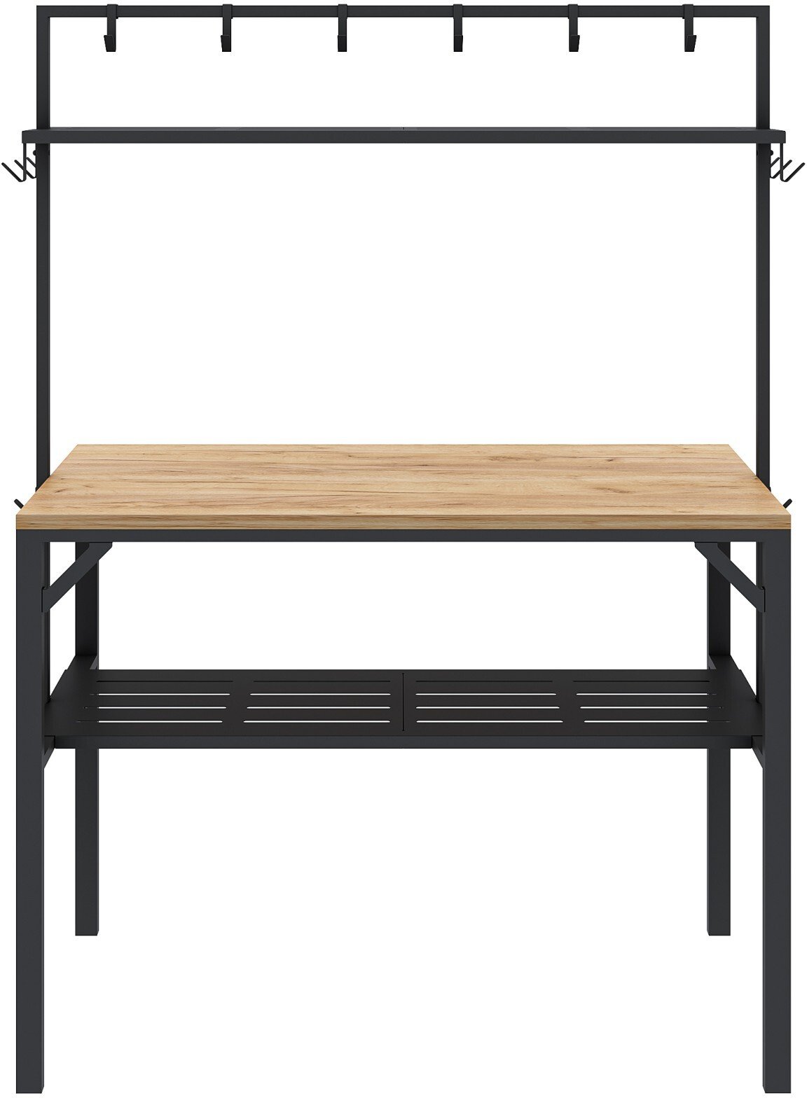 Каркас из черного металла обеспечивает повышенную прочность, устойчивость и долговечность всей конструкции. Фасады и столешница из ЛДСП устойчивы к влаге и бытовым воздействиям, что гарантирует длительный срок службы.