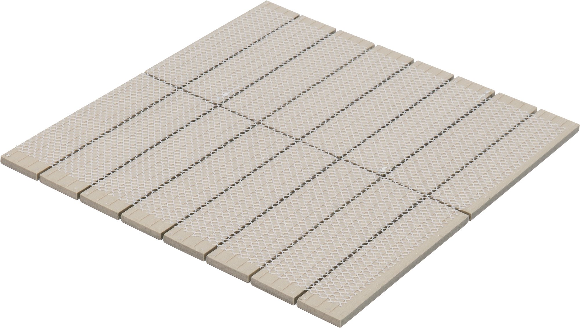 Мозаика - это современная классика в интерьере: лаконичная геометрия, глубокая фактура и игра оттенков серого без единого яркого акцента. Матовая бархатистая поверхность не отражает бликов, делая интерьер уютным даже при ярком освещении. Благодаря толщине и жёсткой сетке мозаика сохраняет форму при укладке на сложные поверхности - арки, колонны, закруглённые ниши.