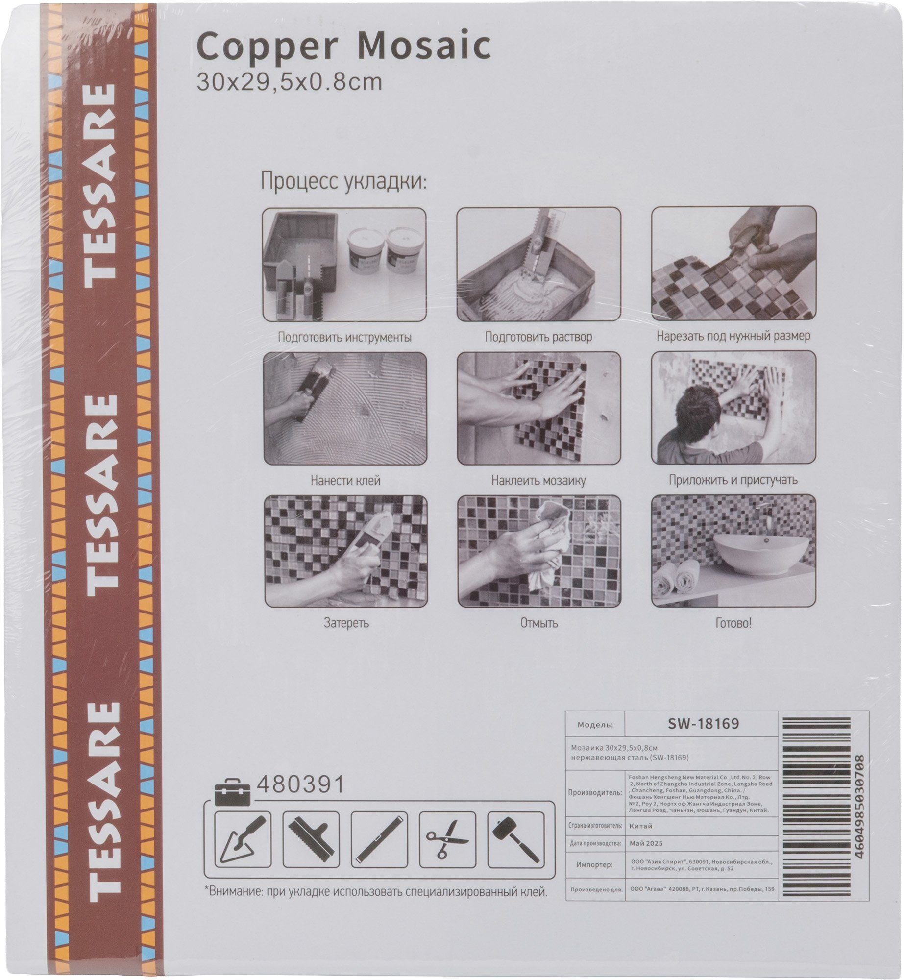 Преимущества: - Устойчивость к коррозии: благодаря использованию нержавеющей стали мозаика не подвержена окислению и сохраняет первоначальный вид долгие годы; - Прочность: материал устойчив к механическим повреждениям и стиранию; - Универсальность: подходит для различных поверхностей и помещений; - Простой уход: не требует специальных средств для обслуживания; - Эстетика: современный металлический блеск добавляет интерьеру роскошный вид.