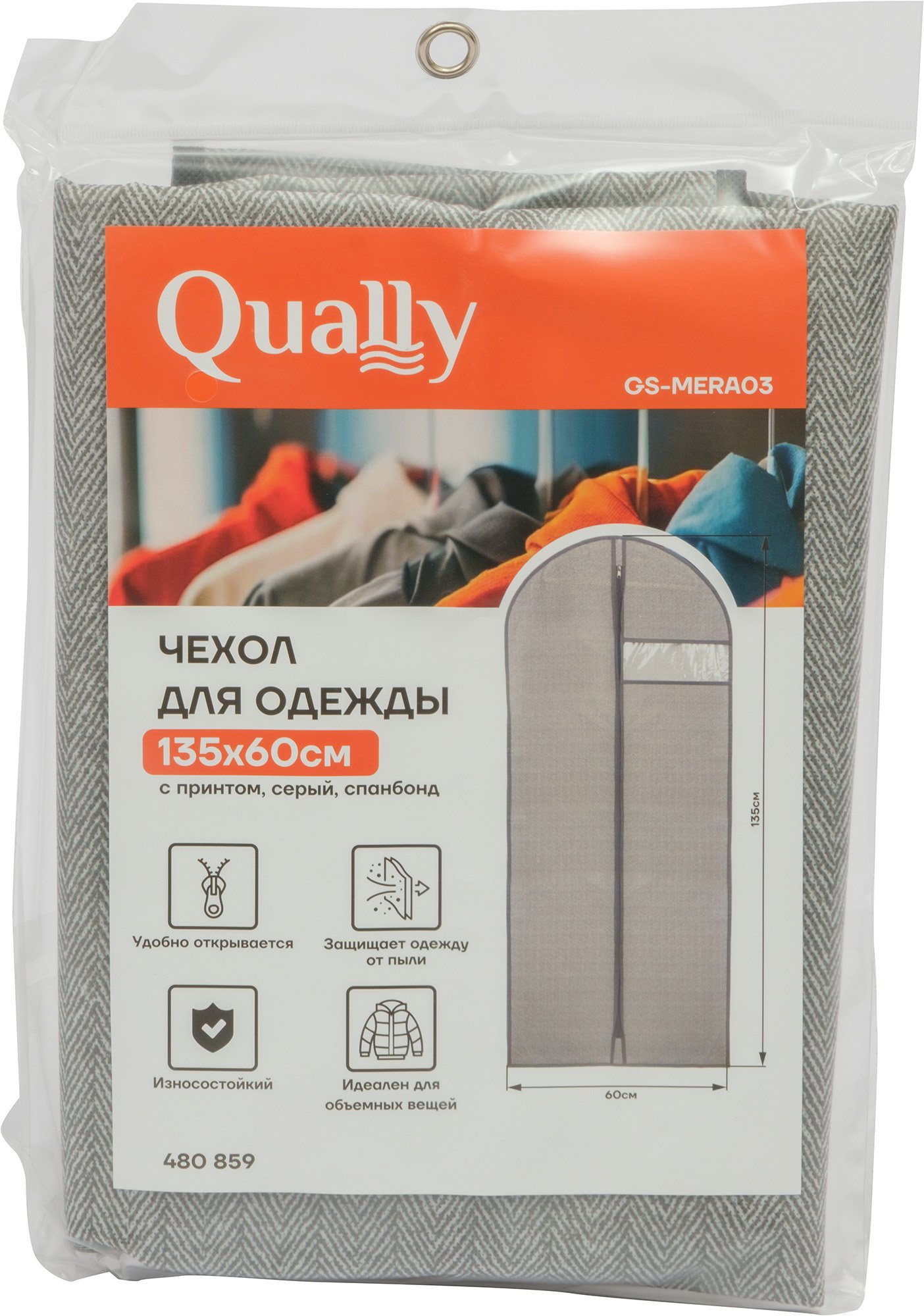 Чехол д/одежды Qually 60х135см с принтом, серый, спанбонд