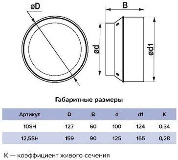Металлическая заслонка позволяет регулировать объем воздуха, в том числе полностью перекрыть поток. Антимоскитная сетка защищает помещение от проникновения насекомых и грязи из вентиляционного канала.