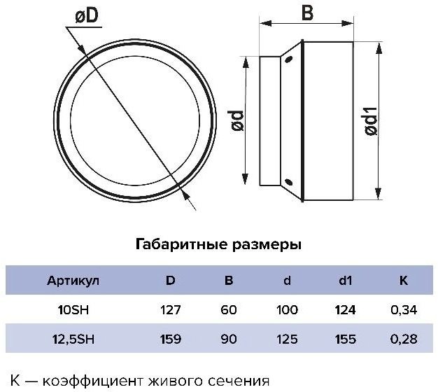 В ассортименте представлены 2 вида теневых решеток для монтажа с круглыми (модели решеток: 10SH, 12,5SH) и прямоугольными воздуховодами (модели решеток: 511SH10, 612SH10, 620SH10, 620SH12,5, 620SH16).