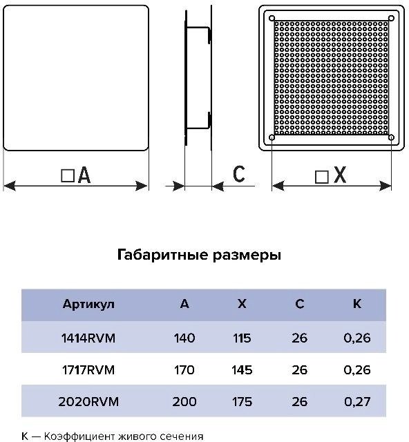 Квадратная вентиляционная решетка RVM из стали используется для потолочного и настенного монтажа в приточно-вытяжных системах вентиляции для декорирования и скрытия любых ниш, вентиляции шкафов и гардеробных.