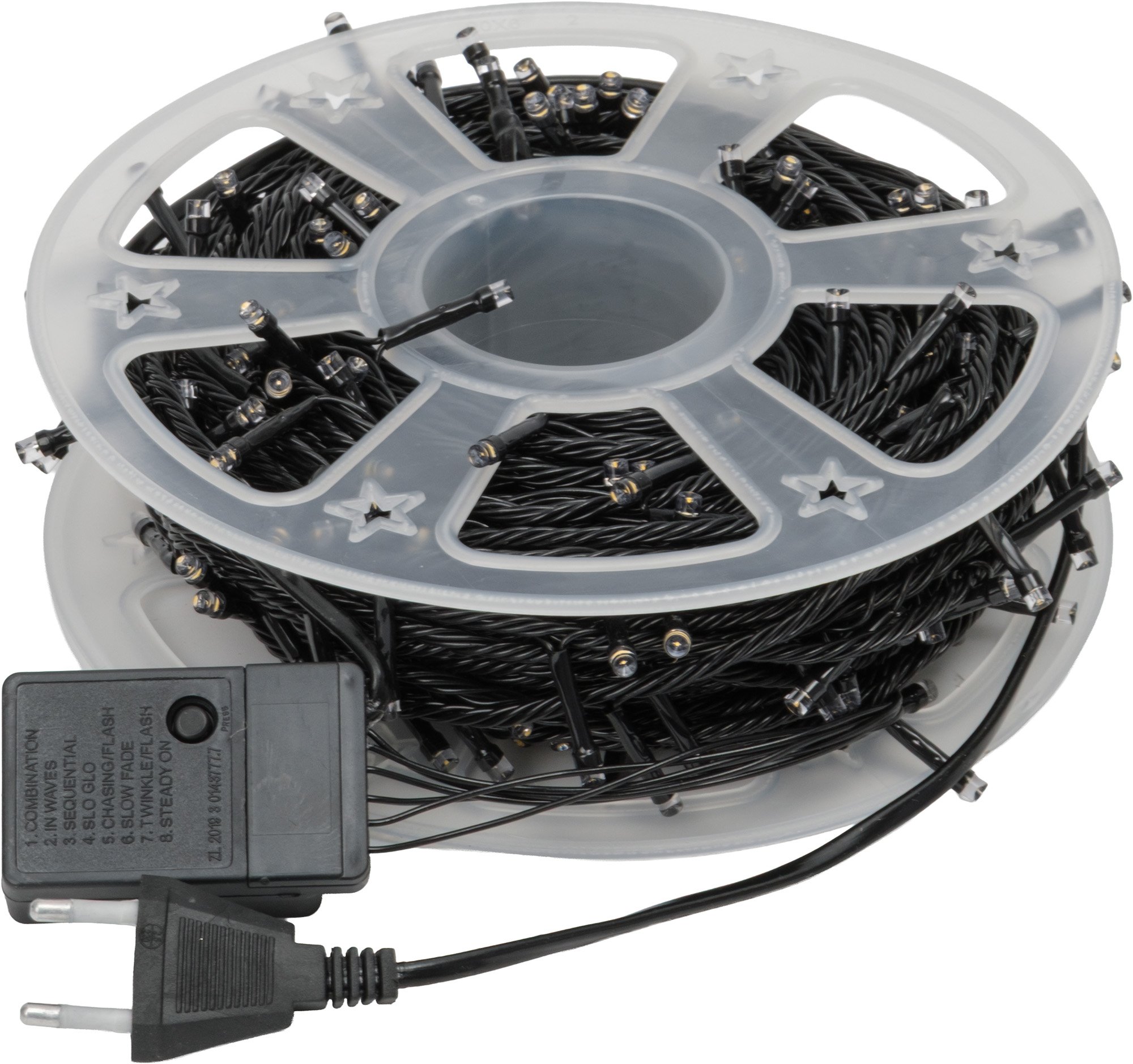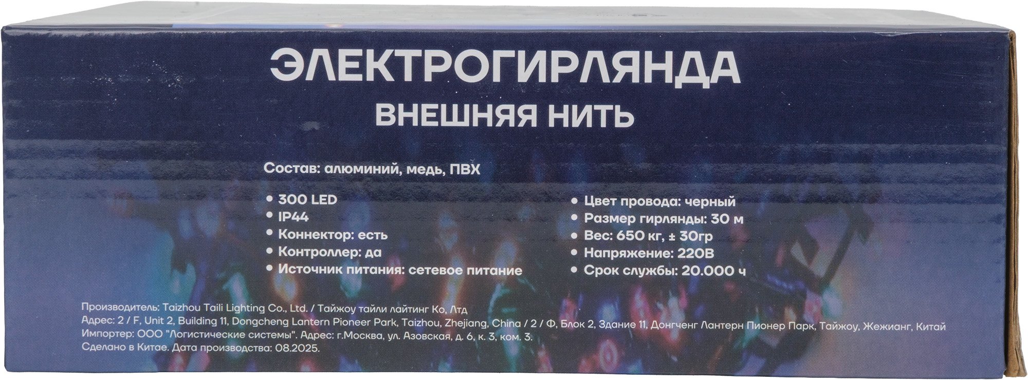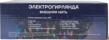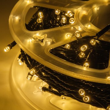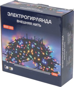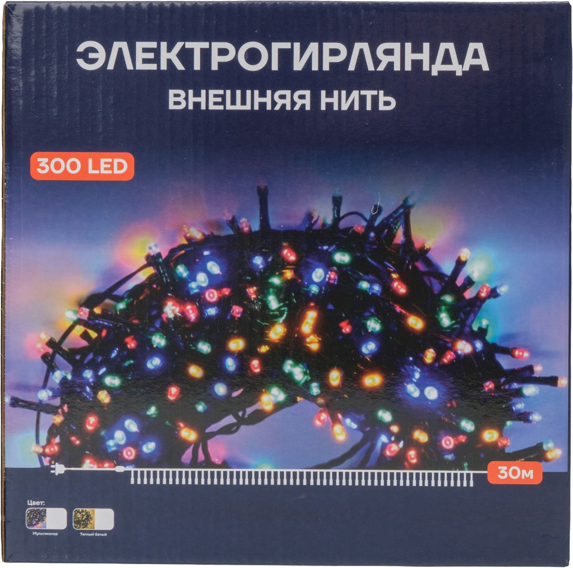 - Электрогирлянда внешняя Нить 30м 300LED IP44, теплый белый, контролер, с коннектором, черный кабель