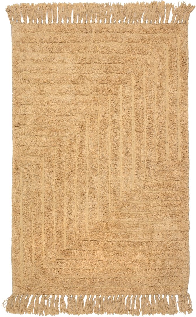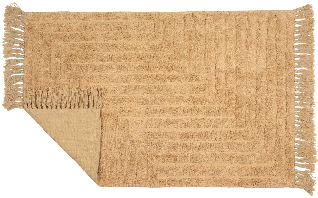 Красивый коврик с кистями — сразу заметен! Хлопок приятный на ощупь, хорошо держит форму после стирки. Цвет — нежный бежевый, подходит под любой стиль. Зигзаг добавляет изюминку.