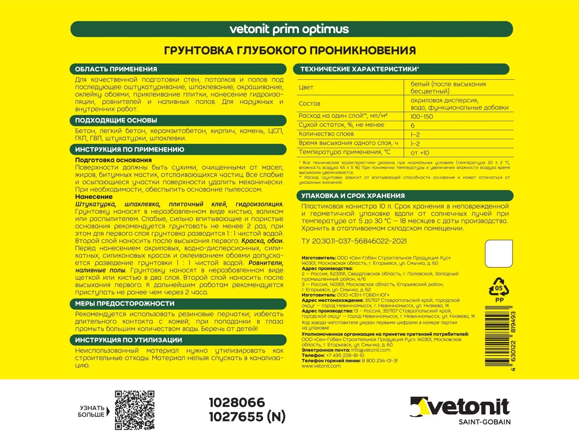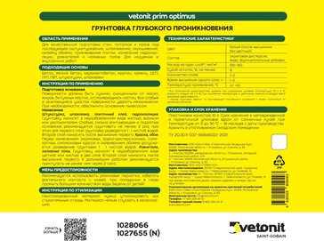 - Грунтовка глубокого проникновения Ветонит Прим Оптимус (5л)