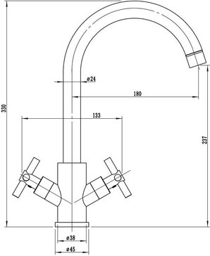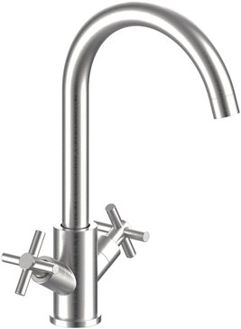 Корпус из нержаеющей стали и R-образный излив длиной 18 см создают современный и практичный образ. Поворотный аэратор и механизм кран-буксы обеспечивают комфорт и точный контроль воды. Широкий винт гарантирует надежное крепление.