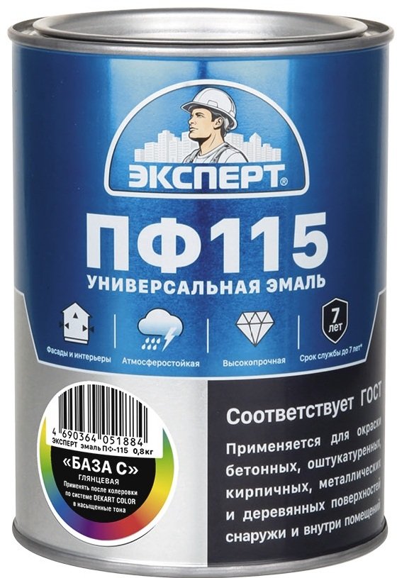 - Эмаль ПФ-115 ЭКСПЕРТ глянцевая База С (0,8кг)