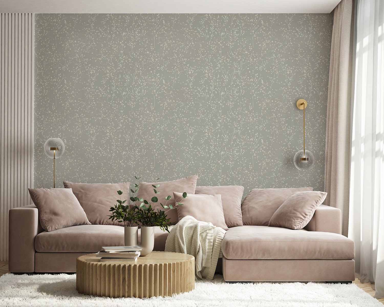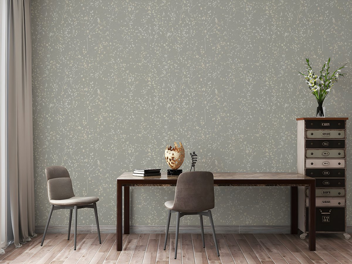 По абсолютно матовой поверхности коллекции «Виола» струятся изящные ветви с небольшими цветками. Деликатный рисунок напоминает объёмную ручную вышивку на благородной ткани. Интерферентные краски с перламутровым отливом подчёркивают затейливые изгибы, а редкие штрихи глиттера добавляет узору едва уловимое сияние.
