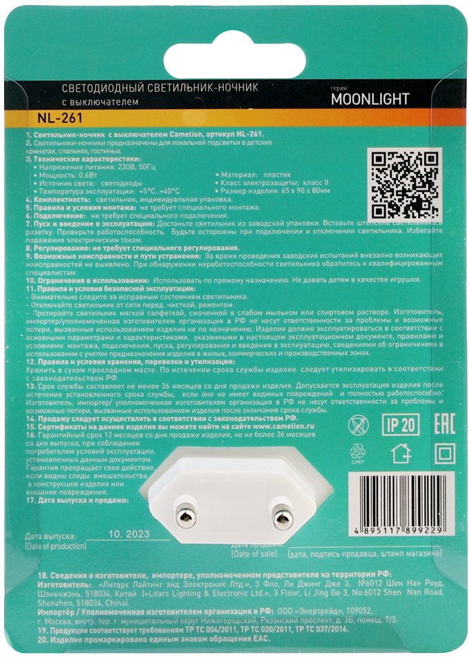 Ночник Camelion NL‑261 — лаконичное и уютное световое решение для домашнего интерьера. Его сдержанный дизайн и мягкое свечение создают комфортную атмосферу, идеально подходящую для спальни, детской или прихожей.