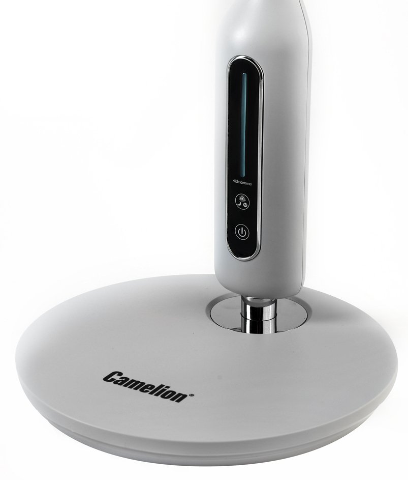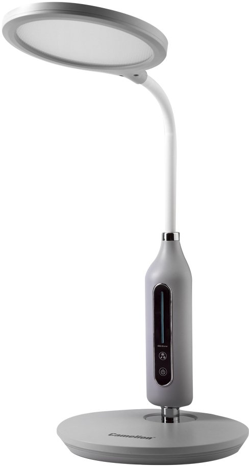 Светодиодный настольный светильник премиального качества Camelion KD-862 может использоваться в качестве источника местного освещения как в домашних помещениях, так в офисных и учебных учреждениях. Мощный (10 Вт), яркий (600 лм- макс.), с высоким индексом цветопередачи ( Ra > 90) имеет плавную регулировку яркости и три режима цветовой температуры (2800К, 3800К, 5700К). Сенсорная панель управления световыми режимами находится на нижней части стойки. в рабочем положении высота светильника 410 мм, Плафон ( ф150 мм) и основание ( ф185 мм) имеют форму дисков. Верхняя часть стойки - гибкая для регулирования наклона плафона, изготовлена из металла, покрытого силиконовой оболочкой. Блок питания ( ~230В / =12 В) совмещен с электровилкой светильника. Провод питания - 1,5 м. Светильник имеет компактную красочную подарочную упаковку с пластиковой ручкой для переноски. Гарантийный срок - 36 месяцев.
