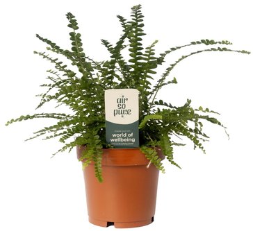 Чем покоряет этот папоротник? -Эффектный силуэт. Ажурные, перистые листья образуют пышный фонтан высотой до 30 см, создавая объёмную зелёную композицию. -Непрерывный рост. Постоянно выпускает новые вайи, обеспечивая динамичное обновление внешнего вида. -Компактный формат. При диаметре горшка 12 см идеально подходит для: небольших подоконников; настенных кашпо (благодаря поникающим побегам); журнальных столиков и консолей; офисных рабочих зон. -Воздушность. Лёгкая, полупрозрачная структура листвы визуально расширяет пространство и наполняет его ощущением свежести.