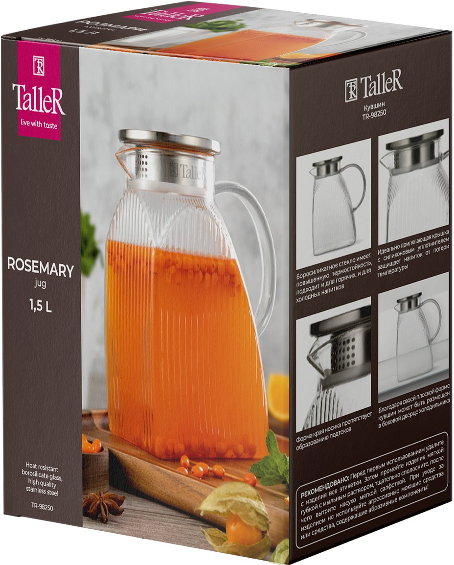 - Кувшин Taller Розмари 1,5л стекло, крышка-фильтр нерж.сталь