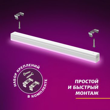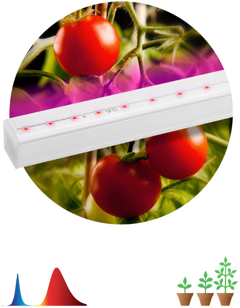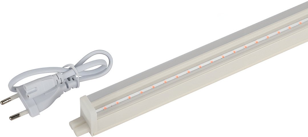 Линейный фитосветильник ЭРА FITO-14W-Т5-N красно-синего спектра, мощность — 14 Вт. Ускоряет фотосинтез, эффективен для вегетационного развития растений. Вся энергия свечения распределяется на две длины волны — 660 и 440 нм, что в разы ускоряет фотосинтез. В единую цепь можно помещать до 14 таких светильников общей мощностью до 140 Вт. Соединять светильники между собой легко вручную — за считанные секунды и без специальных инструментов. Корпус изготовлен из прочного пластика и отличается хорошим теплоотводом за счёт плотного прилегания печатной платы к основанию.