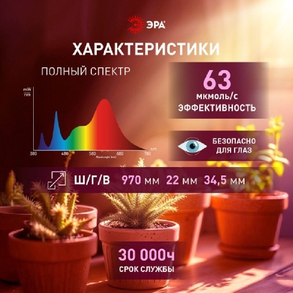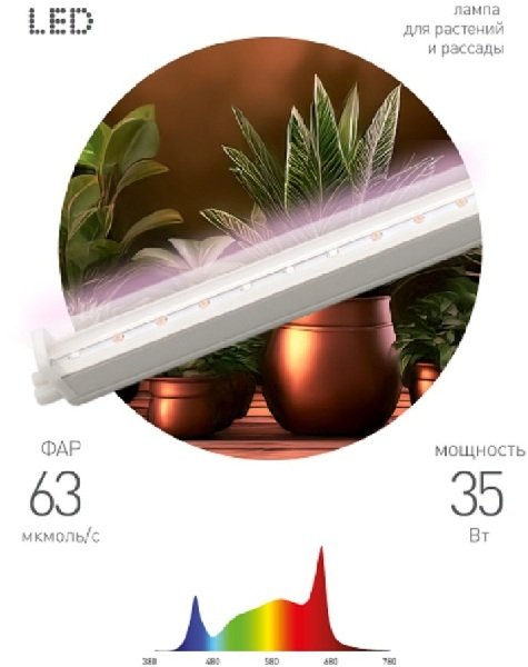 Линейный светодиодный светильник красно-синего спектра ЭРА FITO-36W-RB-N - незаменимая вещь в разведении пасленовых, крестоцветных, тыквенных, а также цветов. Идеален для вегетации. Отличная альтернатива прожектору. Небольшие внешние размеры лампы 1200х64 мм позволят разместить ее в небольшом пространстве. Энергия красно-синего спектра увеличит выработку сахаров и глюкозосодержащих веществ, ускоряет процессы роста и фотосинтеза. Также работает в режиме досвечивания. Приятное оформление в белом цвете впишется в любой интерьер. Возможен подвесной монтаж. Цветовая температура в 1200 К и отсутствие пульсаций обеспечат Вам приятное розовое свечение и не доставят дискомфорт. Высокая степень защиты о пыли и влаги, а также II класс электробезопасности гарантируют высокое качество и отсутствие поломок. Начните заниматься любимым делом вместе с фитолампой от компании ЭРА!