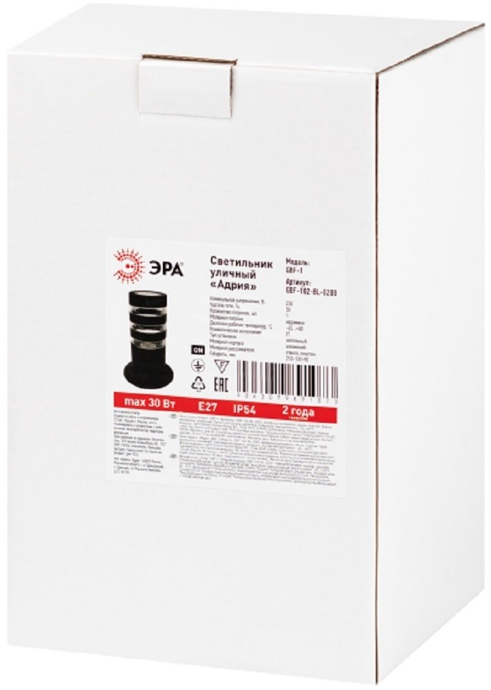 - Светильник уличный напольный ЭРА Адрия GBF-102-BL-0200 230В Е27 max 30Вт IP54 210х132x90мм черный