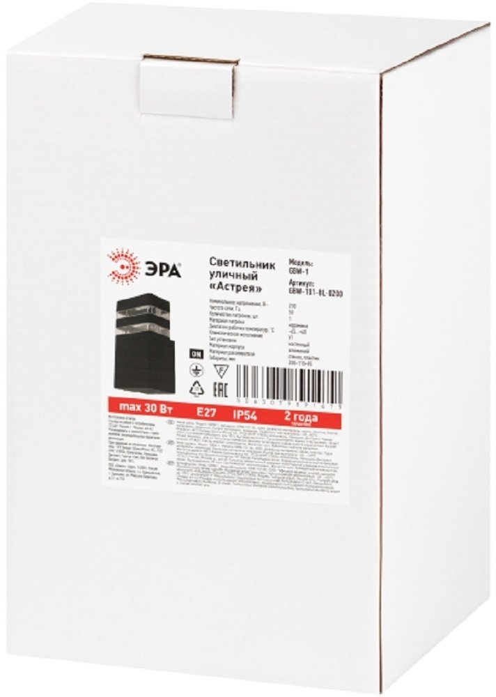 - Светильник уличный настенный ЭРА Астрея GBW-101-BL-0200 230В 1хЕ27 max 30Вт IP54 200х110x95 вверх черный