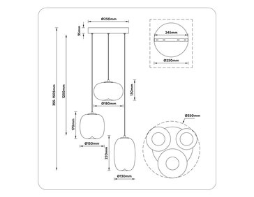 - Светильник светодиодный подвесной LH11096/3 WH/FR белый/белый матовый 12W 3000K D350х1505мм