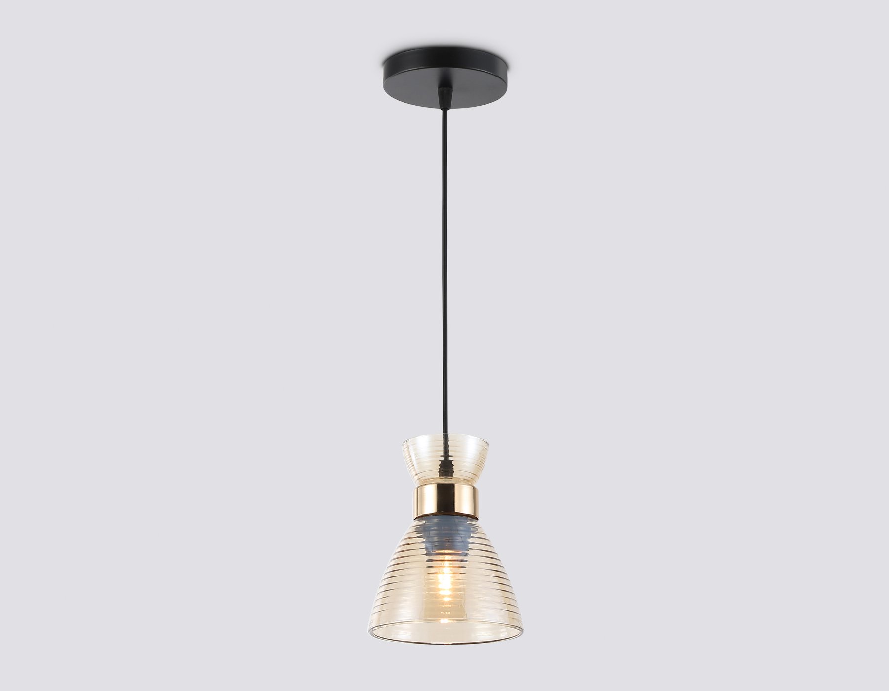 - Светильник подвесной TR3403 BK/FGD/TI черный/золото/янтарь E27 max 60W D135х1000мм