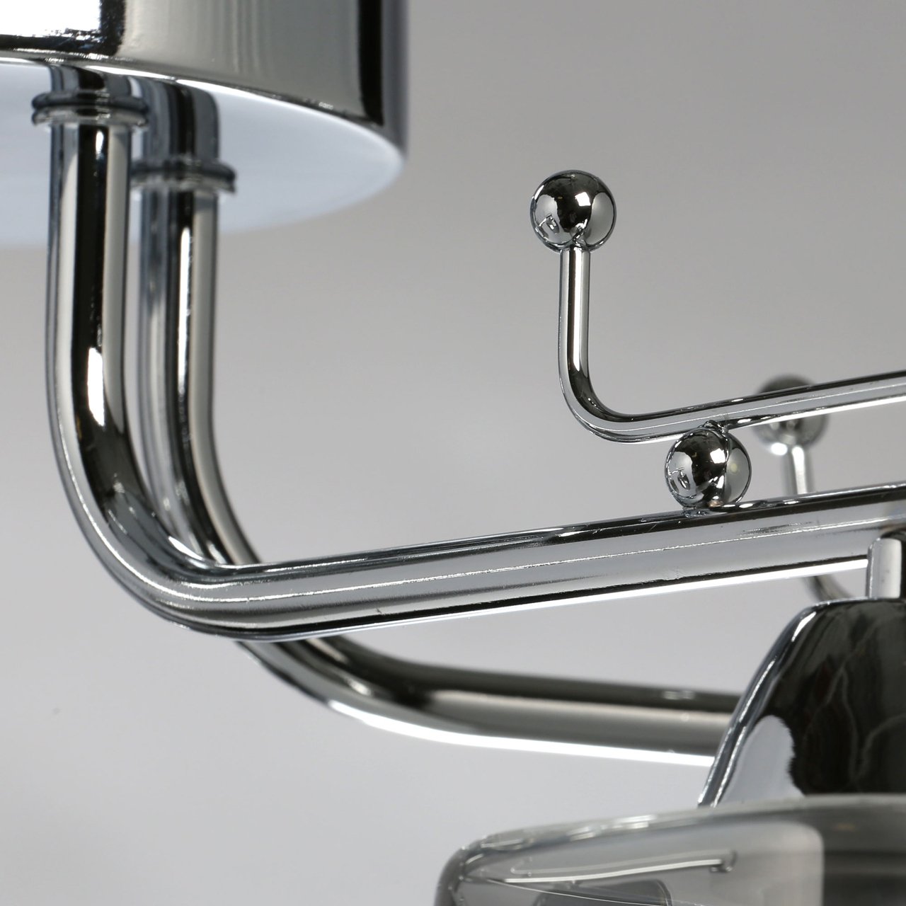 Компактный и лаконичный дизайн делает люстру универсальной: она подойдёт для гостиной, кухни или прихожей. Крепление на планку обеспечивает простой монтаж, а общая мощность в 200 Вт позволяет осветить помещение площадью до 10 м². Минималистичный облик и сочетание хрома с полупрозрачным стеклом придают светильнику элегантность и делают его акцентным элементом интерьера.