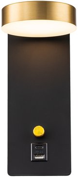 - Светильник настенный Freya Sol FR5346WL-L5BBZ Черный и Латунь 2900К/7Вт/USB Type-C