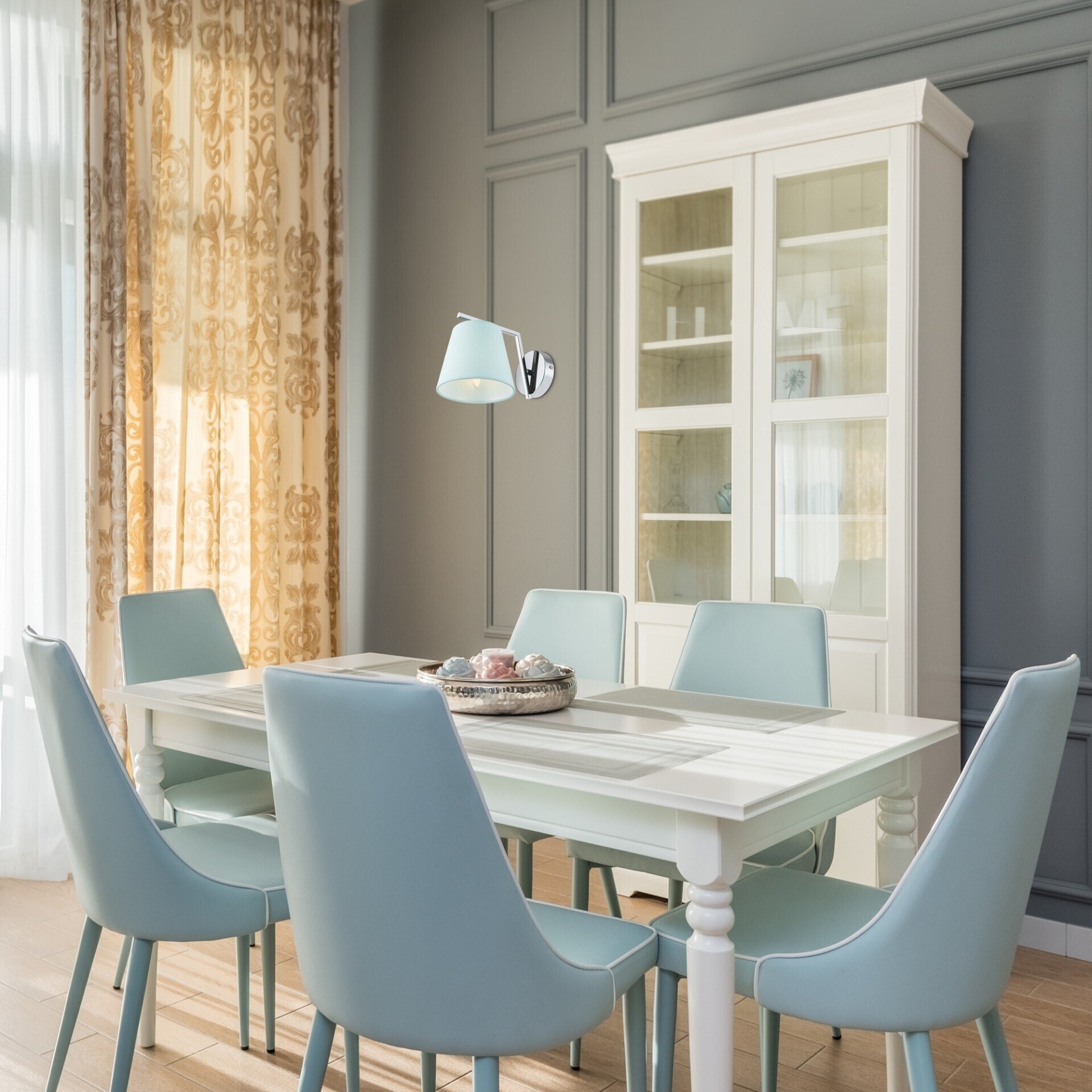 Модель органично вписывается в различные стилистические решения — от современного минимализма до неоклассики. Она прекрасно подойдёт для жилых помещений: украсит прихожую, спальню или гостиную, добавит уюта в зону чтения или возле зеркала. В общественных пространствах — бутик‑отелях, салонах красоты или кафе — светильник создаст атмосферу сдержанной роскоши и комфорта, не перегружая визуальное восприятие.