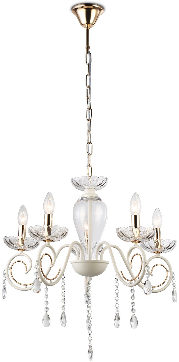 - Люстра подвесная TR4962/5 WH/GD/CL белый/золото/прозрачный E14/5 max 60W D590х950
