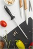Главная задача мусата - выравнивать кромку ножа и поддерживать остроту лезвия между заточками.