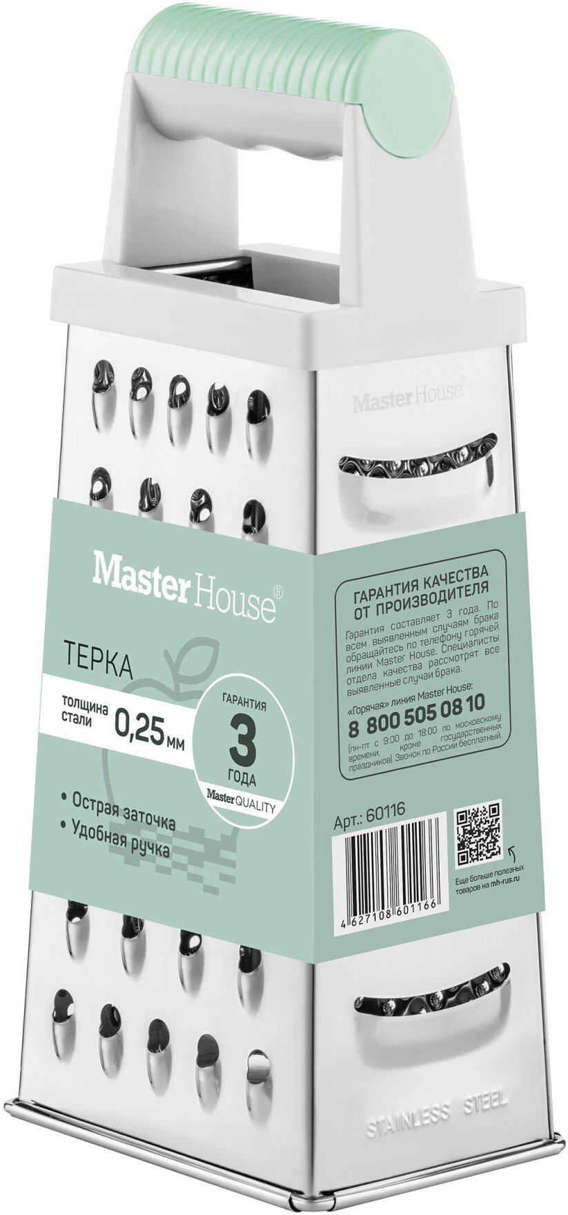 - Терка Master House Изумруд 7х9,5х22,5см 4-гранная нерж.сталь