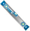 Двутавровый алюминиевый профиль, линейка, 2 акриловых глазка + 1 поворотный на 360°, точность измерений – 1 мм/м. Материал изготовления: алюминий, ABS-пластик. Мощная магнитная лента по всей рабочей поверхности надёжно фиксирует уровень на стальных профилях, трубах, крепежах и других ферромагнитных материалах, освобождая руки для других операций. Ярко-желтый цвет корпуса и контрастная разметка на ампулах обеспечивают отличную видимость в любых условиях освещения. Резиновые накладки на торцах защищают инструмент от повреждений при падении и предотвращают царапины на обрабатываемых поверхностях.